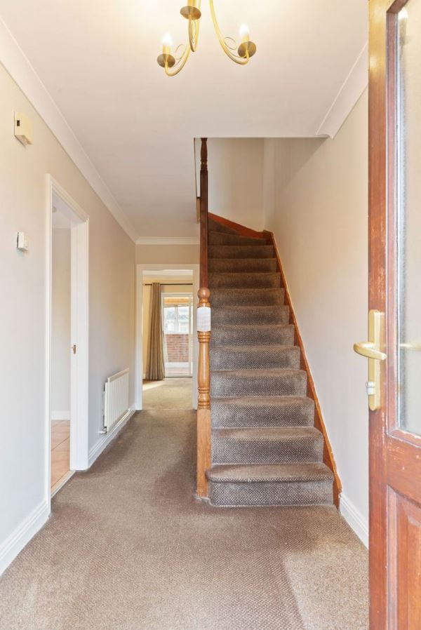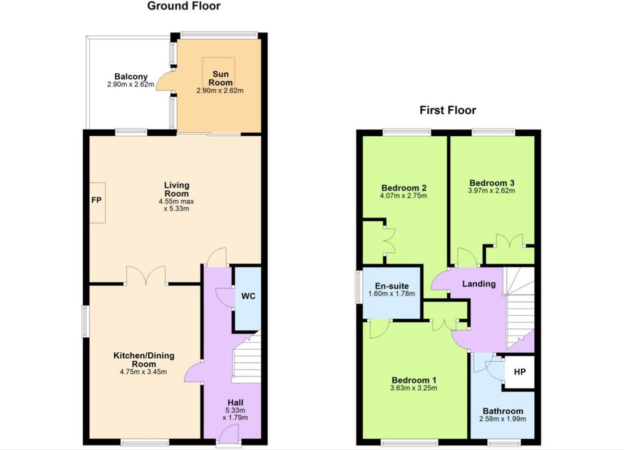 The property boasts an impressive 110 sq. m of sun filled floor space. The property briefly consists of a long entrance hallway with the kitchen on the left upon entrance. The kitchen comes fitted with all mod cons with plenty of over and under head storage space, ideal for a fast paced home. Through the large double doors, you enter the large, cosy living space the property has to offer with a natural fireplace and plenty of space for comfortable living. To the rear there is a small sun room, perfect for a small office or playroom. The property also features a large south facing balcony over looking the gardens of this peaceful development. The downstairs is completed with the guest w/c under the stairs. Upstairs there is three double bedrooms, all with wall mounted wardrobes and fitted with laminate wooden flooring creating a modern finish throughout. The master bedroom also comes with an accompanying en-suite bathroom. The upstairs is complete with a large family bathroom.