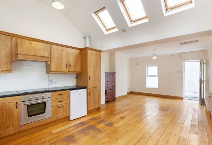 2 Church Row opens into the spacious living and kitchen area with velux windows keeping the property airy and bright throughout the day. Adjoined to the living area is a large fully tilled family bathroom with both bedrooms complimenting it on either side. The property is fully fitted with hardwood flooring through out and has a private south facing patio to the rear.