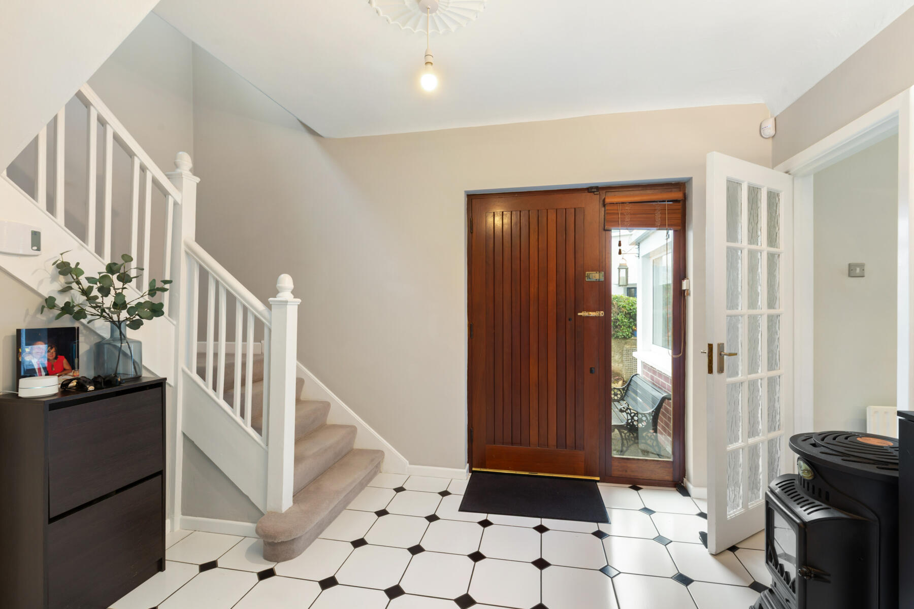 Upon entering, you are welcomed by a spacious entrance hallway featuring a wrap-around staircase, creating a truly impressive first impression. The hallway leads to a bright dual-aspect main living room, complete with an adjoining dining area, providing excellent space for both relaxing and entertaining.