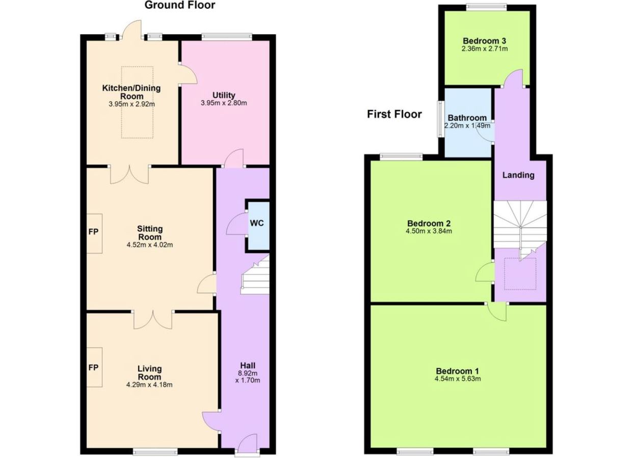 The property consists of a large living space of 180 SQ.M which comprises of a long entrance hallway leading directly to the kitchen of the property to the rear of the house. Adjacent to the hallway there is a large living room to the front with double doors leading into a similarly sized sitting room, both fitted with wooden flooring and open fire places, creating a warm and homely feel. To the rear there is the fully fitted, tiled kitchen, fitted with all mod cons and plenty of storage space throughout. Off the kitchen there is a small utility room with potential to be used for a number of uses. From the kitchen there is access to the rear garden, which comes beautifully paved ideal for the summer barbecue. The ground floor is complete with the guest w/c under the staircase. Up the wrap around carpeted staircase on the first level of the first floor there lies the family bathroom and a single bedroom to the rear. At the top of the stairs, there is the two double bedrooms of the property. These generously sized, sunfilled rooms have plenty of extra storage space with fitted wooden floors, making for a warm, welcoming accomodation.