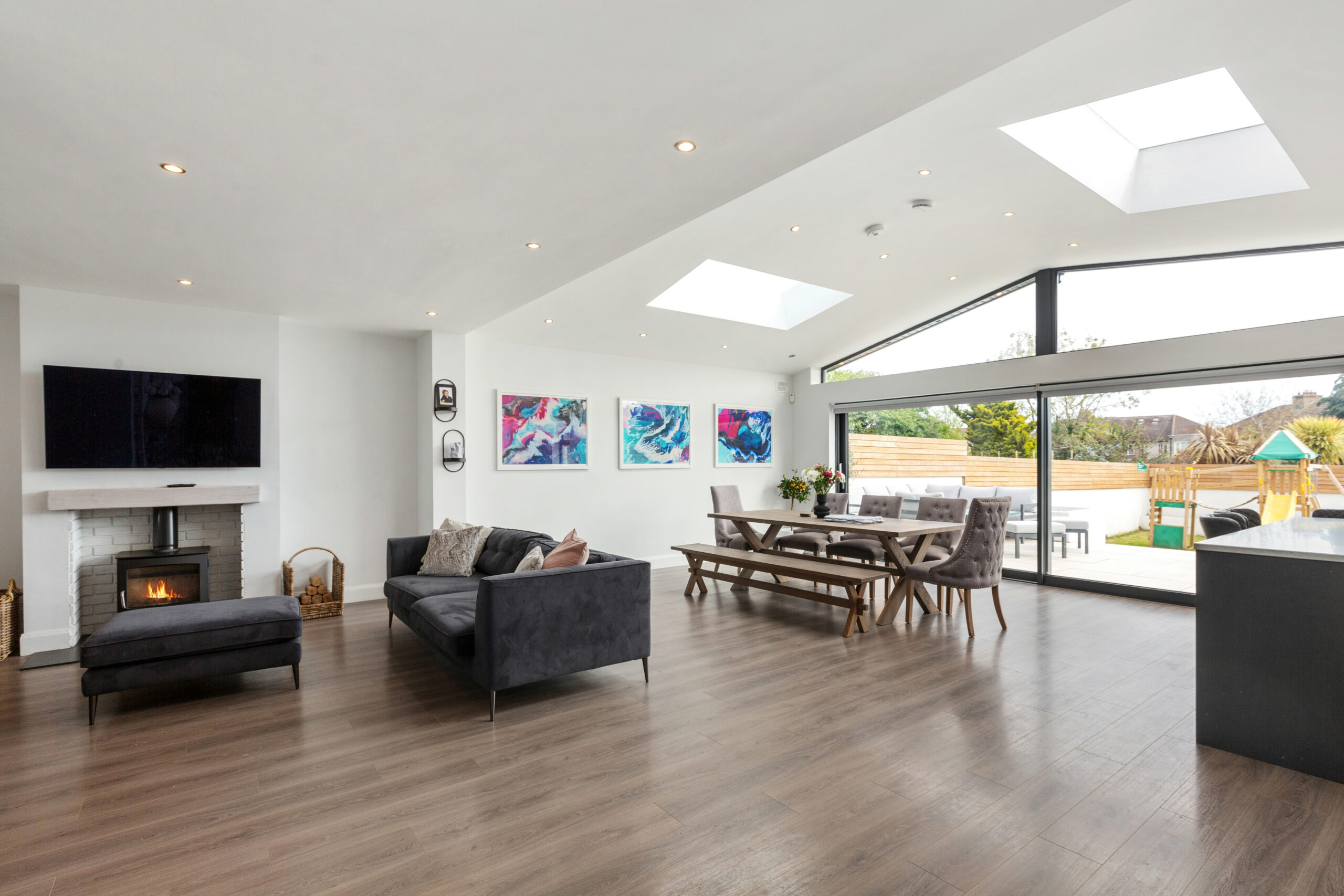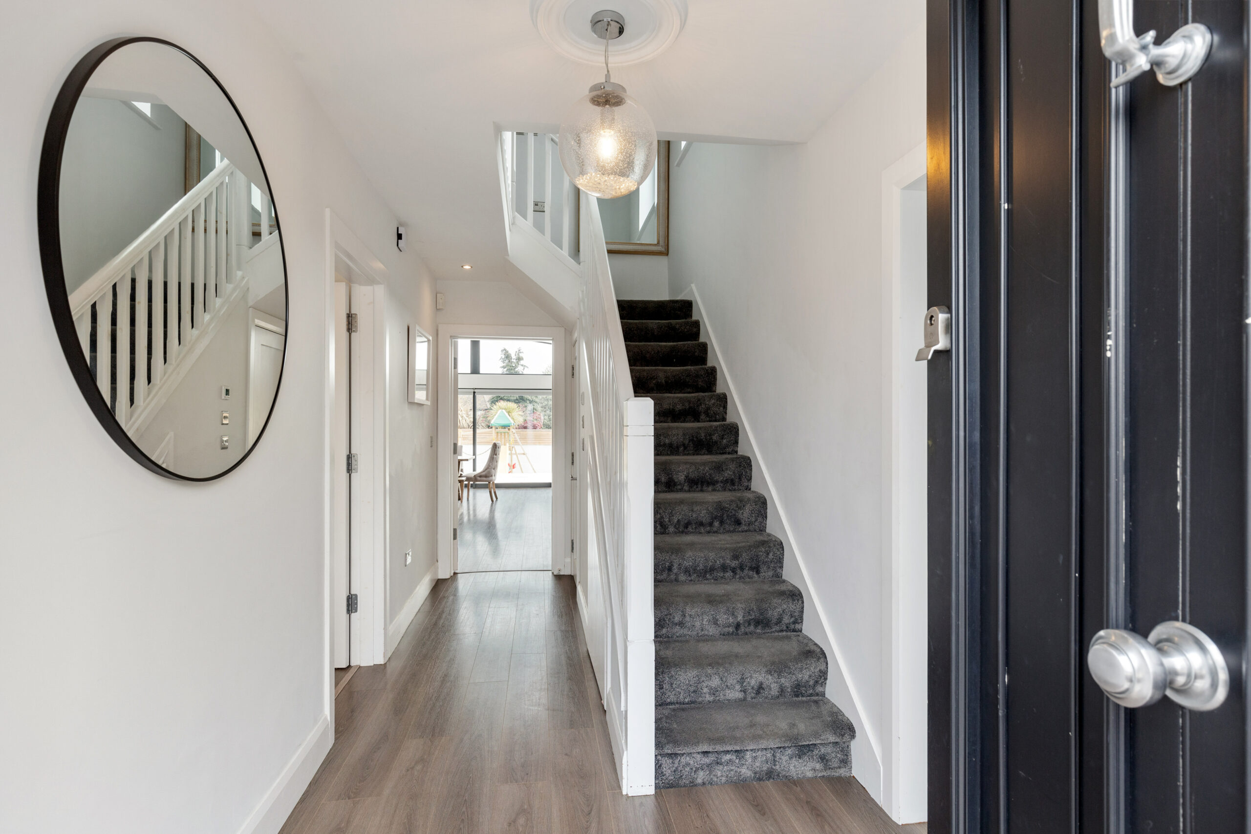 When entering number 39, you are greeted by a large and wide entrance hallway fitted with laminated wooden flooring throughout, off the main hallway there is a family living room, reception room (currently being used as a home office but will suit a variety of uses) and a newly fitted family bathroom under the stairs. At the end of the entrance hallway, you are greeted by the large and bright open plan living, kitchen and dining room. This great space has been smartly fitted with good sized skylights making the most of the sunlight coming into the room. The kitchen has been completely remodelled and holds plenty of extra and underhead storage space along with an island, perfect for a fast paced family home. The living space has a wall mounted TV and smartly fitted seating arrangements to take full advantage of the space on offer. Off the kitchen, there is a large utility room which is a perfect space for extra storage or a laundry room. There is two pane sliding doors leading out into the large, rear garden fitted with stone slabs leading down onto the large grass area the garden has, making this the perfect area for a young family to enjoy. On the first floor, the master bedroom is to the rear with plenty of space for extra storage with built in wardrobes throughout. To the front of the property, the remaining two double bedrooms are located facing out onto Greentrees Road. The ample space all three bedrooms offer make this the perfect property for a busy, fast paced family home. The first floor is completed with a walk in family bathroom. The property also boasts a large, paved front driveway with space for off street parking for up to 3 cars.